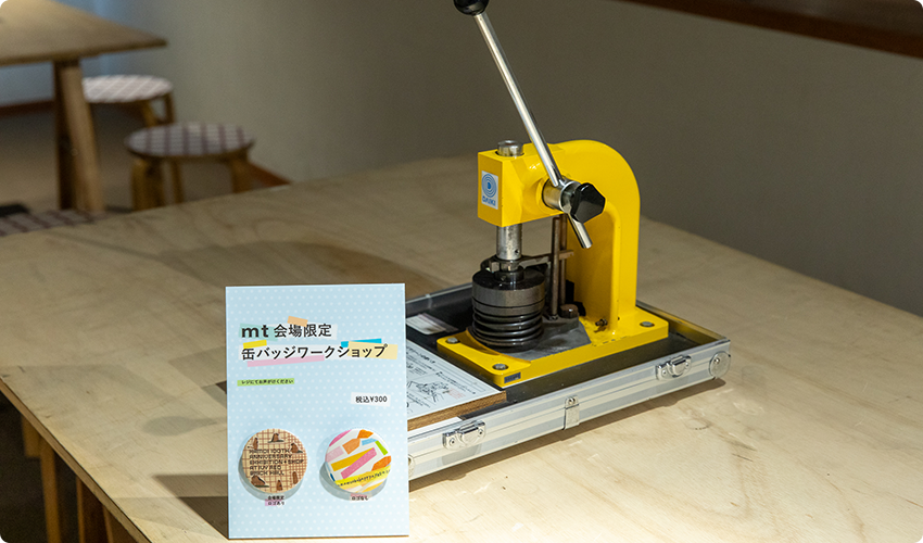 In the outdoor area at the venue's entrance, an installation entitled "100 Colours No.46" was created using 100 different colours of masking tape by an architect, artist, and designer named Emmanuel Muho. In addition, a booth and store were set up to show the 100-year history, and these areas were decorated with a plaid pattern inspired by the mesh sheets used in construction scenes. The store sold a variety of unique products, including 100th-anniversary limited edition tapes and items inspired by tools related to industrial and construction sites. We organized activities such as a corner where people could freely paste tapes to the walls and workshops featuring silk screen printing on bags made from paper which is a material of masking tape.